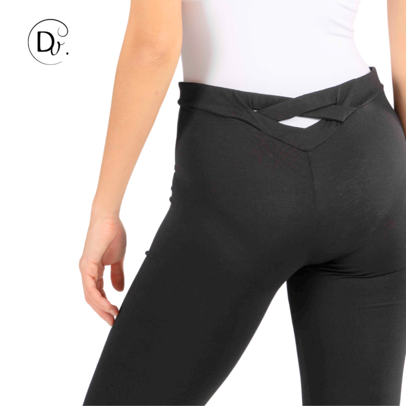 Pantalon de jazz avec une coupe droite et découpée en V à l'arrière, avec des lanières croisées. Sa ceinture plate élastiquée lui permet de maintenir un maximum de confort. Grâce à sa matière, il est possible de réaliser des mouvements amples.