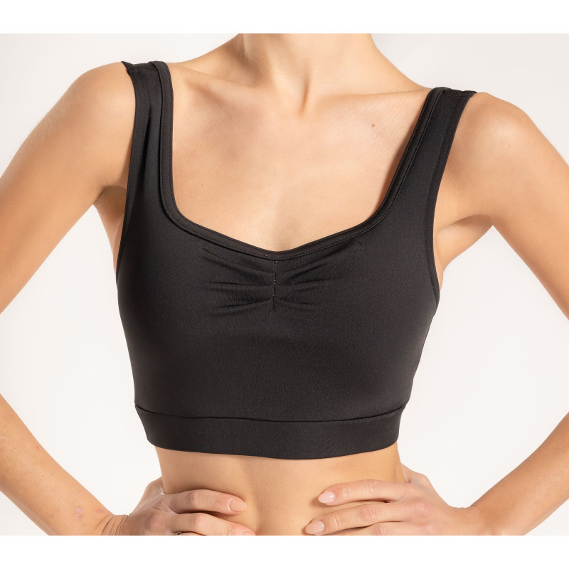 Brassière élégante avec un devant en forme de cœur et des bandes élastiques. Encolure froncée pour un style raffiné et confortable.