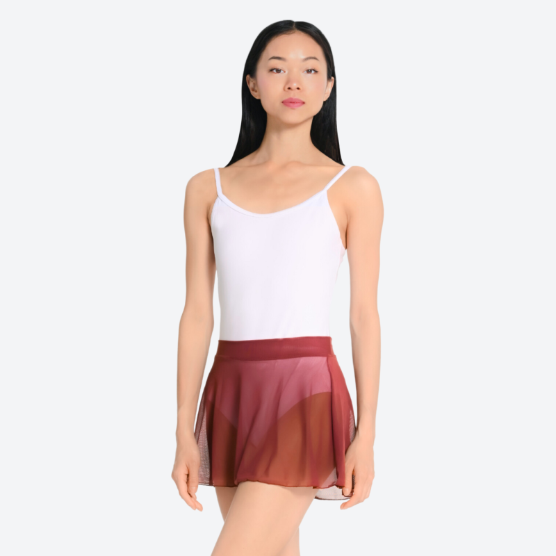 Jupe de danse en voile extensible avec découpe ronde, qui peut être combinée avec les modèles de justaucorps Dansez-vous. Disponible en 14 couleurs.
