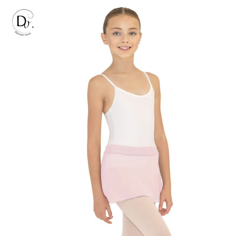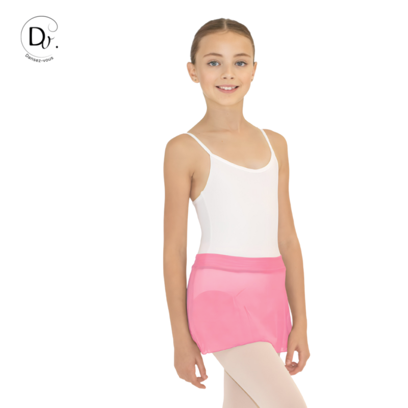 Jupe de danse pour juniors en voile stretch avec découpe ronde, qui peut être combinée avec les modèles de justaucorps Dansez-vous. Disponible en 14 couleurs