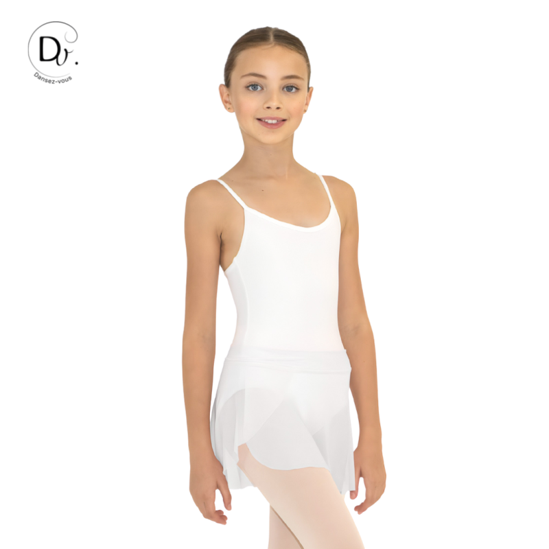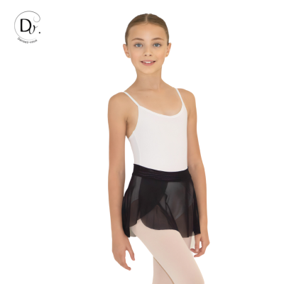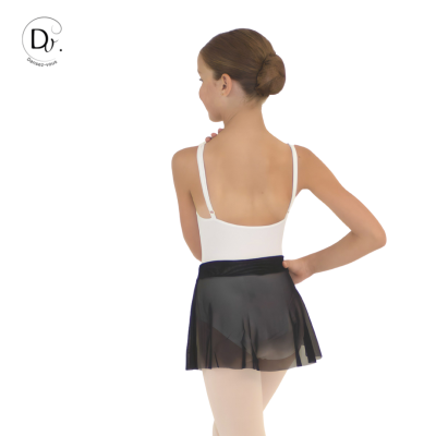 Jupe en maille extensible avec effet portefeuille. Se combine parfaitement avec les modèles de justaucorps Dansez-vous pour créer une tenue unique pour les danseuses juniors.