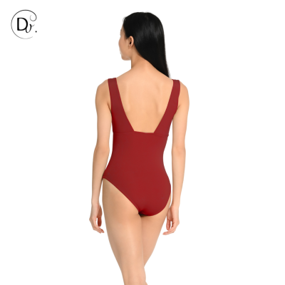 Ce justaucorps reprend la ligne de signature de la marque Dansez-vous. Avec son dos carré et ses larges bretelles, il apporte élégance et confort aux danseuses.