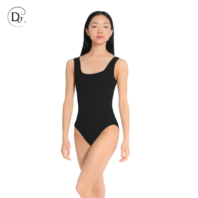 Ce justaucorps reprend la ligne de signature de la marque Dansez-vous. Avec son dos carré et ses larges bretelles, il apporte élégance et confort aux danseuses.