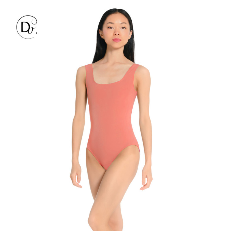 Ce justaucorps reprend la ligne de signature de la marque Dansez-vous. Avec son dos carré et ses larges bretelles, il apporte élégance et confort aux danseuses.