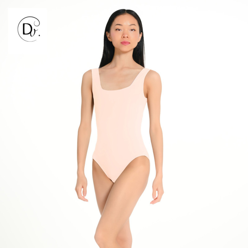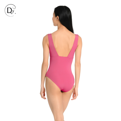Ce justaucorps reprend la ligne de signature de la marque Dansez-vous. Avec son dos carré et ses larges bretelles, il apporte élégance et confort aux danseuses.