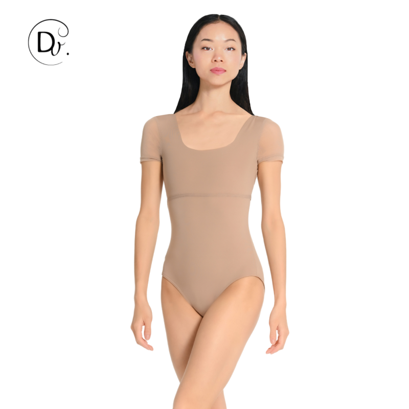Le justaucorps avec manches en maille et dos carré allie élégance et confort pour les danseuses.