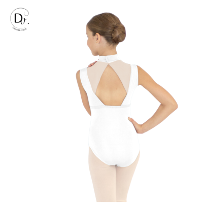 Justaucorps à larges bretelles et col officier pour plus d'élégance et une silhouette flatteuse pour les danseuses juniors.