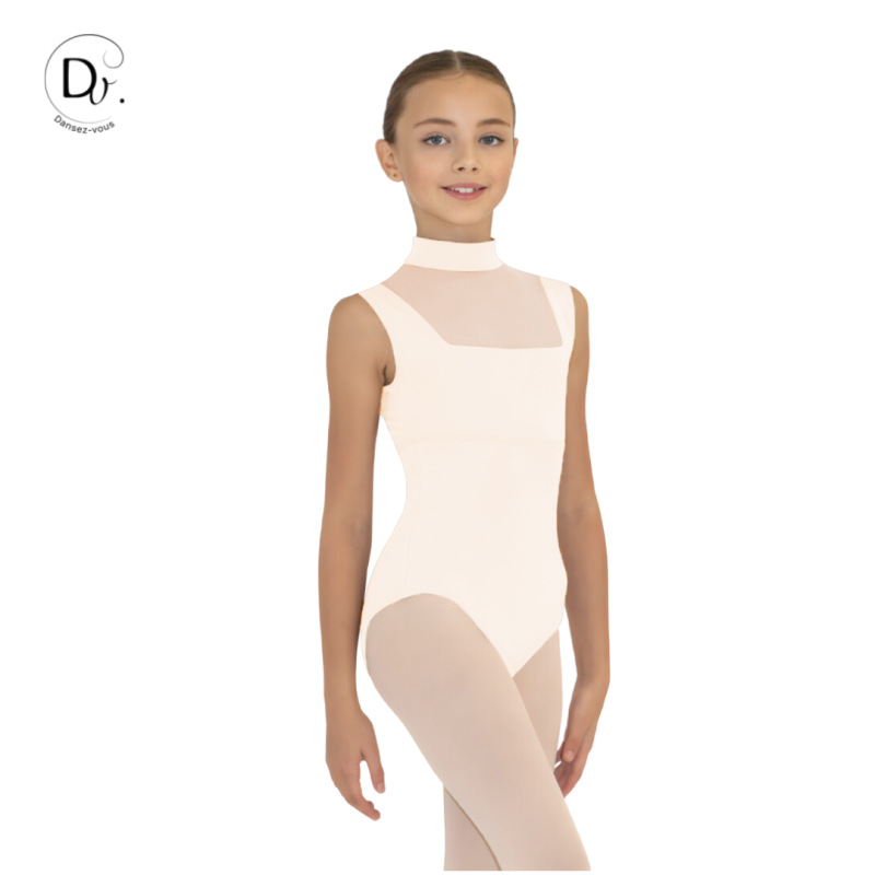 Justaucorps à larges bretelles et col officier pour plus d'élégance et une silhouette flatteuse pour les danseuses juniors.