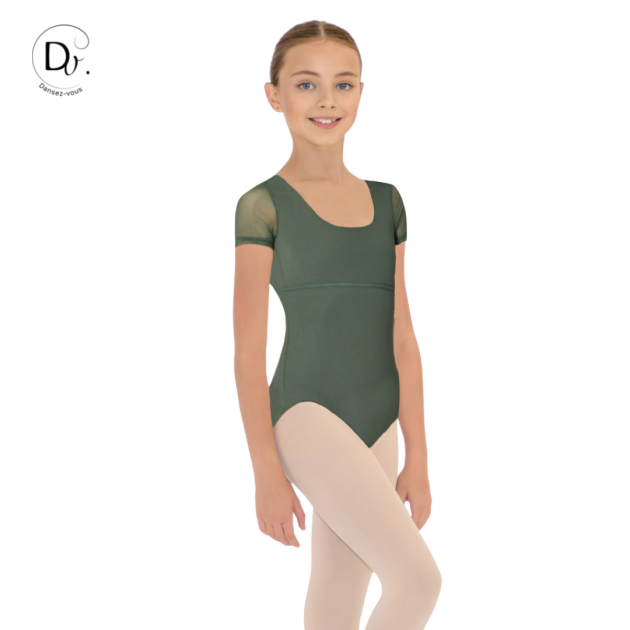 Le justaucorps avec manches en maille et dos carré allie élégance et confort pour les juniors.